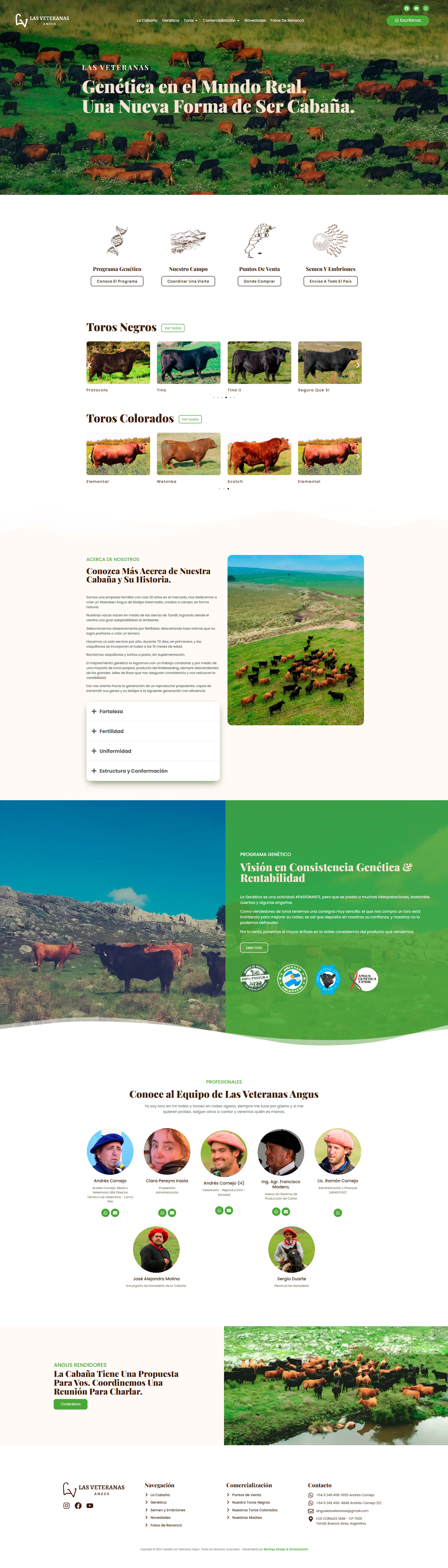 Sitio web para la Cabaña Angus Las Veteranas. Una página institucional y showroom toros y vacas madre y genéticas para la crianza de ganado Angus en la región serrana central de la provincia de Buenos Aires, Tandil.