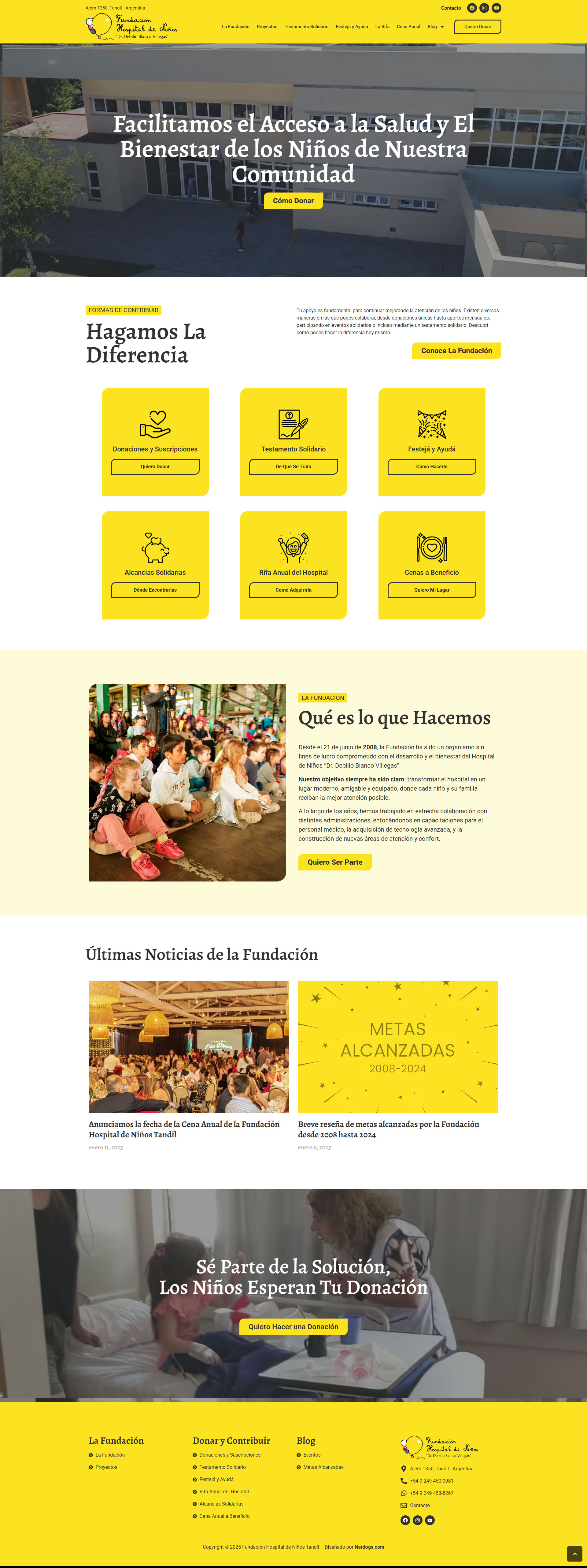 Web diseñada para la Fundación del hospital de Niños de Tandil. Esta web no solo sirve para recaudar donaciones, sino tambien para informar las obras que se realizan con lo recaudado y los beneficios que los niños más necesitados de la comunidad serrana de Tandil reciben gracias a la fuerza incansable que realizan los integrantes de esta institución y la comunidad.