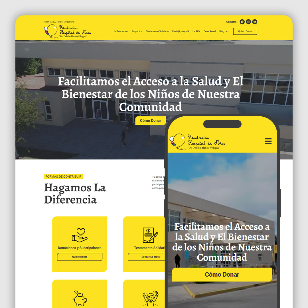 Web diseñada para la Fundación del hospital de Niños de Tandil. Esta web no solo sirve para recaudar donaciones, sino tambien para informar las obras que se realizan con lo recaudado y los beneficios que los niños más necesitados de la comunidad serrana de Tandil reciben gracias a la fuerza incansable que realizan los integrantes de esta institución y la comunidad.